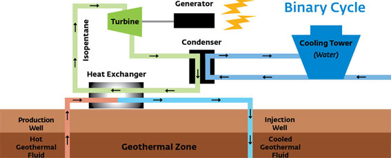 Hay tres tipos de centrales de energía geotérmica: de vapor seco, con reservas de agua caliente procedentes de acuíferos y de ciclo binario.